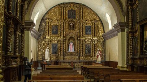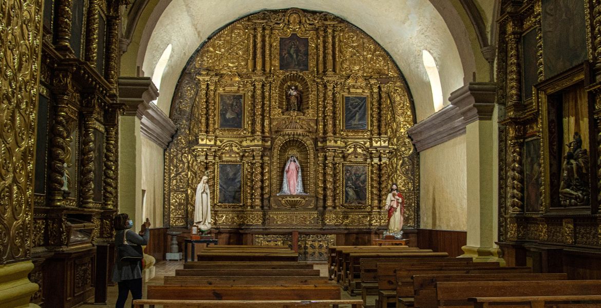 Entre las joyas artísticas que cobija en su interior, destaca el púlpito labrado en una sola pieza de roble, los valiosos lienzos religiosos y los retablos con más de dos metros de altura con relieves de hojas silvestres y ángeles. El inmueble se conserva en buen estado.