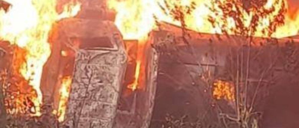 Fotografías del suceso muestran el vehículo envuelto en llamas mientras una densa columna de humo negro se elevaba sobre la zona.