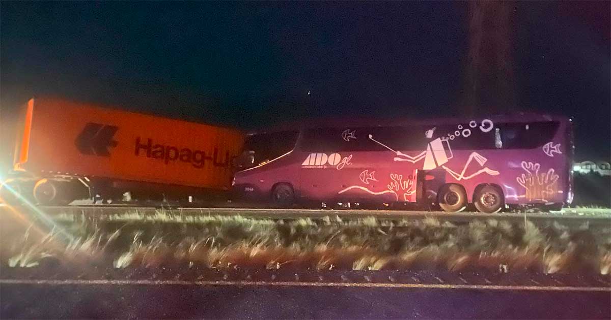 Los primeros reportes indican que el chofer del camión de pasajeros no se percató de la presencia del tráiler con placas de circulación 448WC1 y se estrelló por alcance.