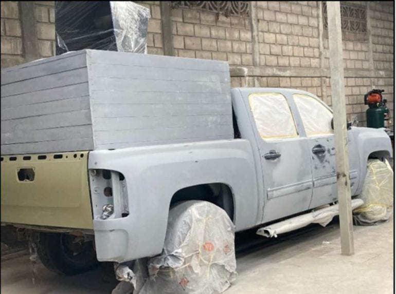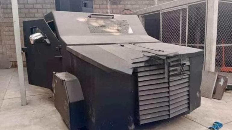 En el cateo se logró asegurar un "monstruo"', nombre que reciben vehículos de carga que han sido modificados con blindaje artesanal para ser utilizados durante operaciones de los distintos grupos del crimen organizado.