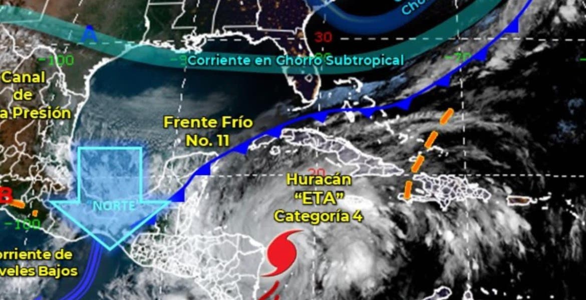 El Huracán #Eta entrará a costas de #Nicaragua en Centroamérica en unas horas más, posiblemente en categoría 5. No representa hasta el momento peligro para costas de #QuintanaRoo. Las lluvias que tenemos las origina el Frente frío Num 11. Debemos permanecer atentos. pic.twitter.com/R7B5V9Ajre