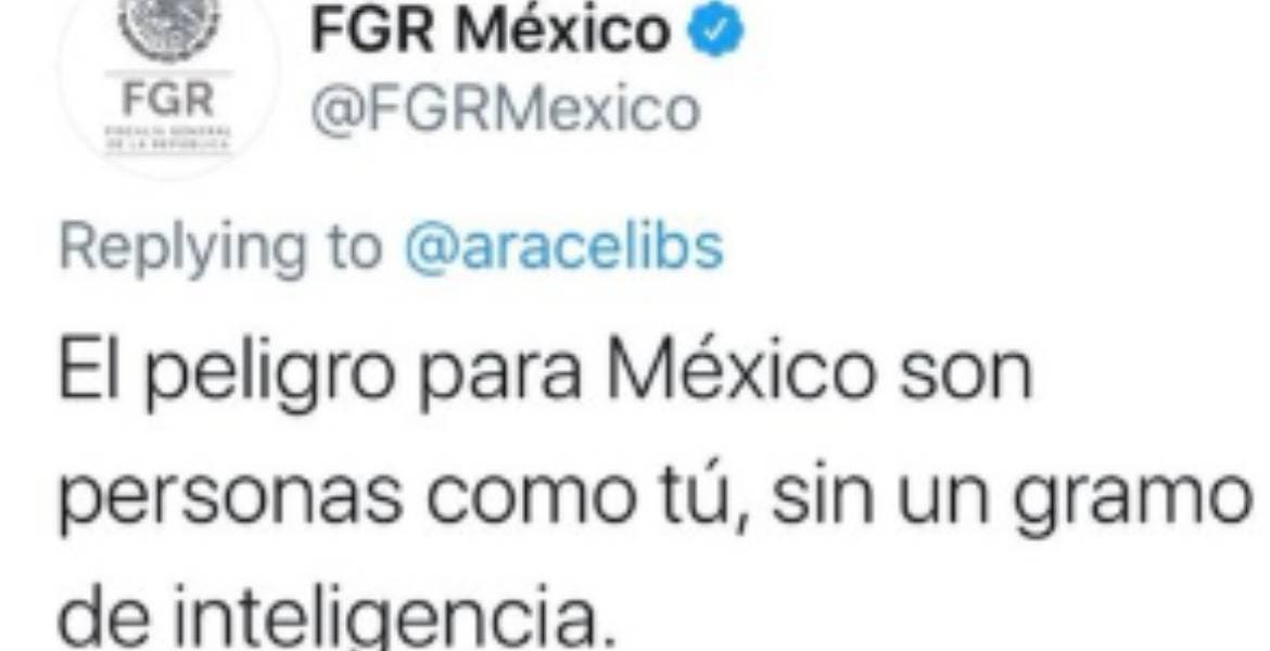 A lo anterior, la FGR a través de su cuenta oficial respondió: “El peligro para México son personas como tú, sin un gramo de inteligencia”.