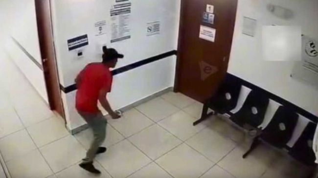 De acuerdo con imágenes captadas por las cámaras de seguridad del establecimiento, el agresor vestía pantalón de mezclilla, playera roja y gorra. Al ingresar al sitio, entabló una breve conversación con una mujer que se encontraba sentada fuera del consultorio.