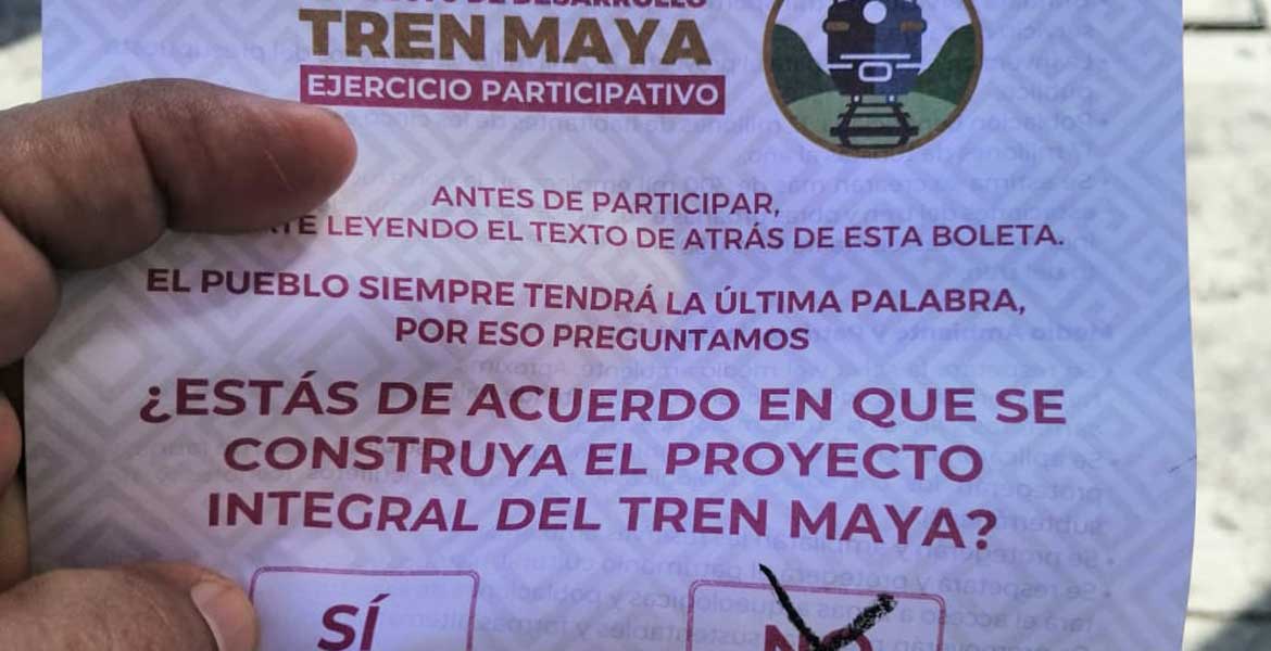 El mes pasado el gobierno federal presumió los resultados de la encuesta, aduciendo que los pueblos nativos de las ya referidas entidades aprobaban la construcción del Tren Maya.