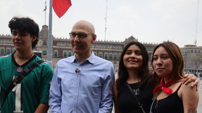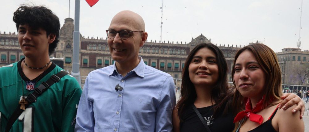 A pocas horas de su llegada, el funcionario de origen austríaco se presentó en el Centro Histórico de la capital para convivir con jóvenes mexicanos, con quienes intercambió perspectivas sobre la relevancia de los derechos humanos en la actualidad.
