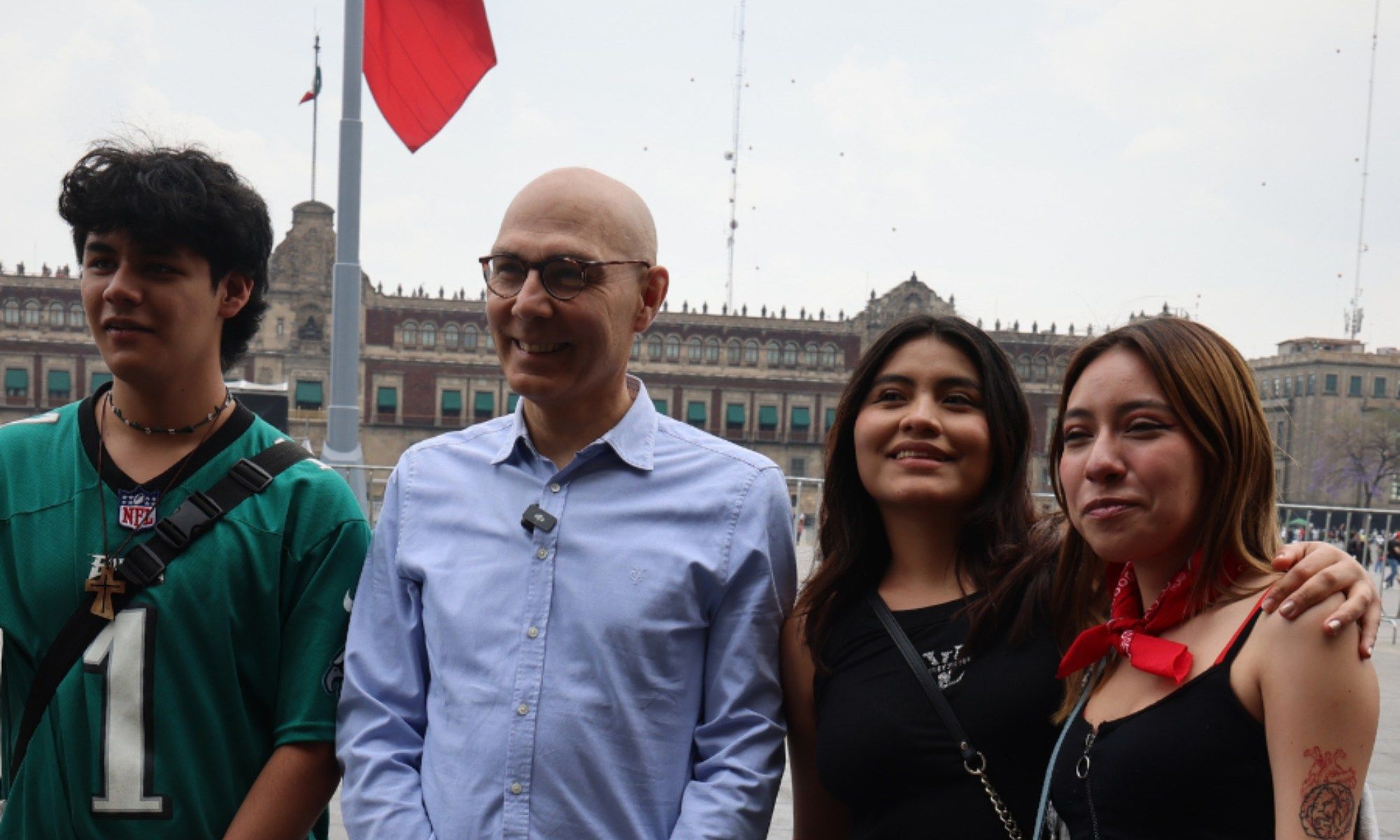 A pocas horas de su llegada, el funcionario de origen austríaco se presentó en el Centro Histórico de la capital para convivir con jóvenes mexicanos, con quienes intercambió perspectivas sobre la relevancia de los derechos humanos en la actualidad.