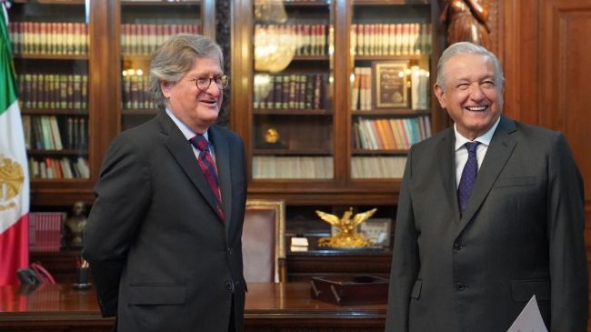 En el encuentro diplomático el mandatario estuvo acompañado del secretario de Relaciones Exteriores (SRE), Marcelo Ebrard Casaubon.