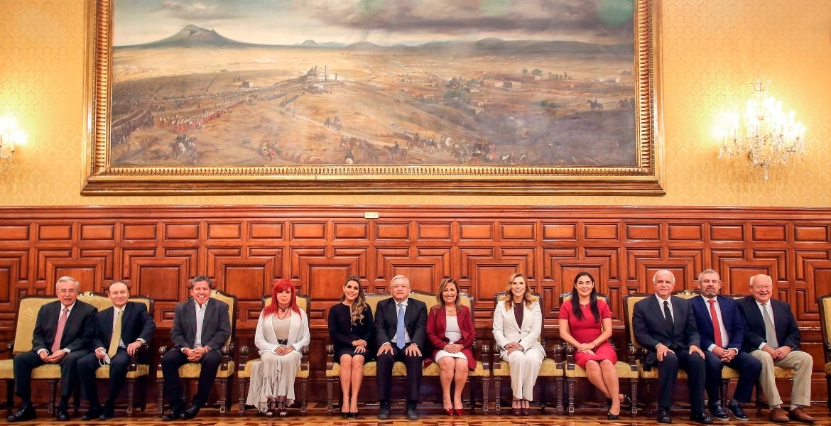 Ciudad de México.- El presidente Andrés Manuel López Obrador, se reunió en Palacio Nacional con los 11 gobernadores electos de su partido, Morena, que vencieron en las elecciones intermedias del 6 de junio, para festejar el triunfo, cerrar filas y acordar los nuevos pasos a seguir.