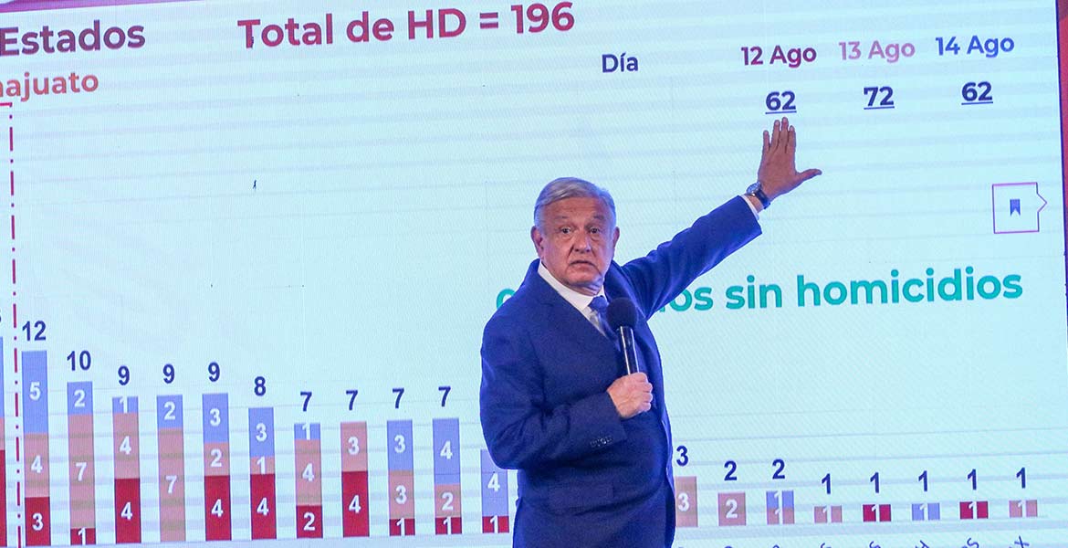 Segundo acto- AMLO presenta cifras de homicidios del fin de semana (12, 13 y 14 de agosto) que suman 196
