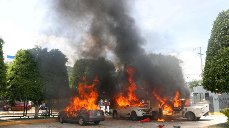 Manifestantes de Ayotzinapa incendian vehículos y lanzan petardos en el Congreso de Guerrero