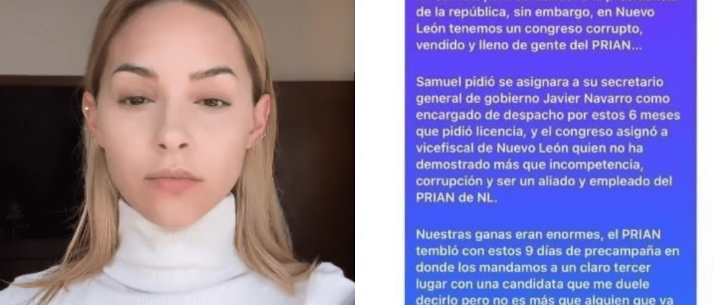 "Nuestras ganas (por la contienda presidencial) eran enormes, el PRIAN tembló con estos nueve días de precampaña en donde los mandamos a un claro tercer lugar. Nuestro amor por Nuevo León y compromiso va más allá de una candidatura y no había manera de que pusiéramos el estado en manos de lo que tanto nos ha tocado sacar y combatir”, agregó la influencer.
