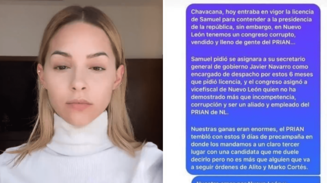 A través de sus redes sociales, Mariana Rodríguez, titular de las oficinas AMAR a Nuevo León y esposa de Samuel García, denunció en su cuenta de Instagram que tanto el PRI como el PAN, ofrecieron dinero y posiciones al interior de la Fiscalía como parte de la negociación para designar un gobernador interino en el Estado.