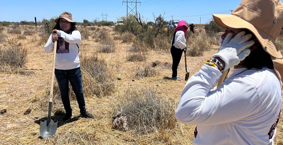 Acompañada por personal de la Comisión Nacional de Búsqueda de Personas Desaparecidas y agentes de la Guardia Nacional y de la Fiscalía de Sonora, además de una decena mujeres que buscan a sus familiares, Flores Armenta llegó al kilómetro 87 de la carretera Hermosillo-Bahía de Kino, donde el mensajero anónimo le aseguró que en ese predio habían abandonado el cuerpo de su hijo.