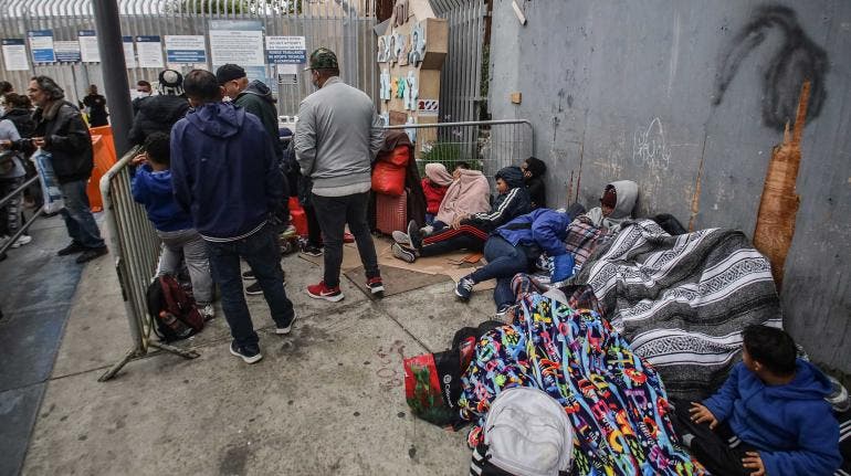 Migrantes improvisan campamento en garita de San Ysidro, acusan falla en aplicación CBP-One