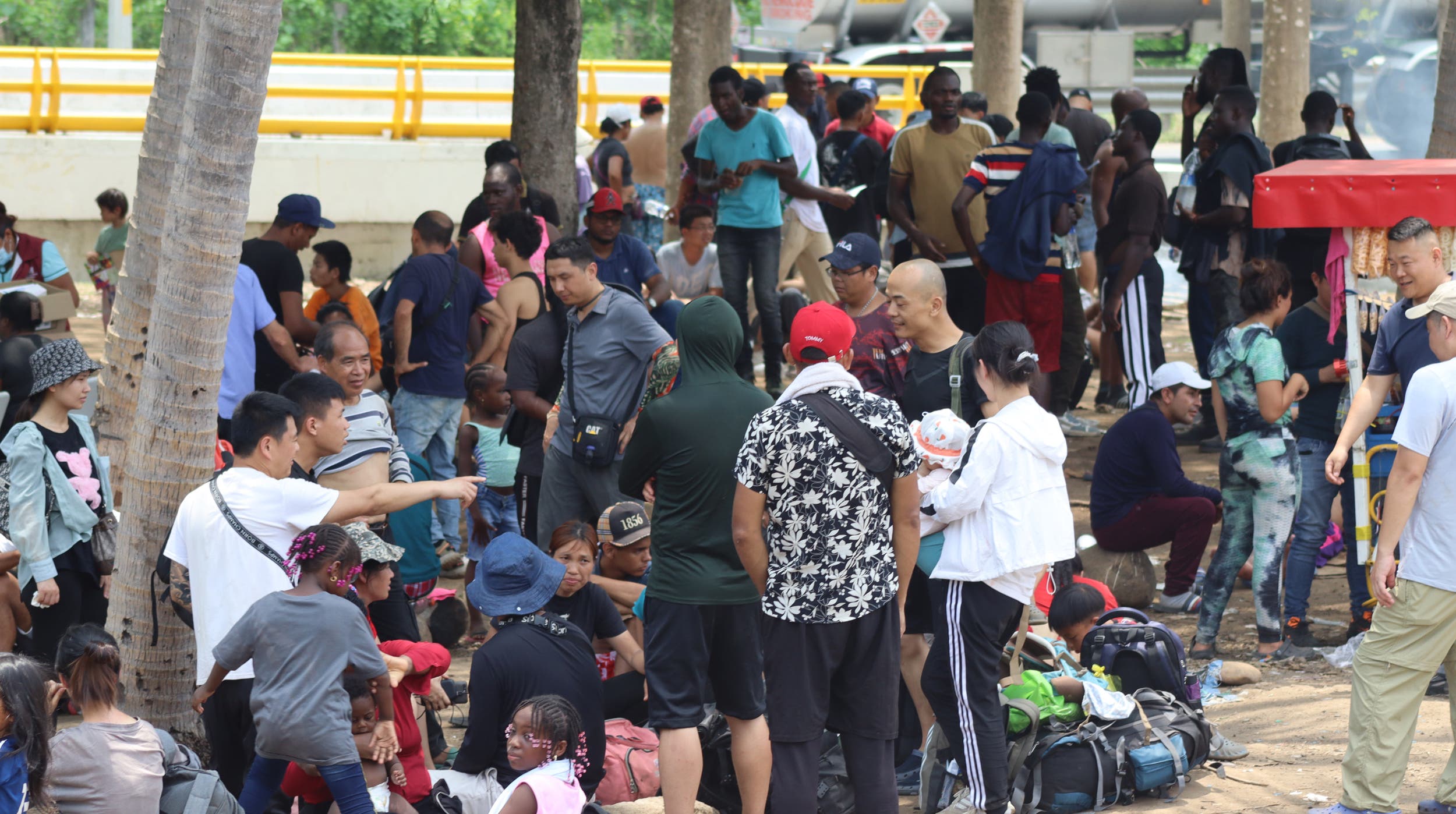 Desde el pasado 11 de mayo cuando terminó el “Titulo 42”, una norma de salud pública que permitía a EU expulsar automáticamente a los migrantes, muchos de ellos empezaron a entregarse de manera voluntaria y se han instalado a la sombra de unos árboles aguardando de sus documentos.