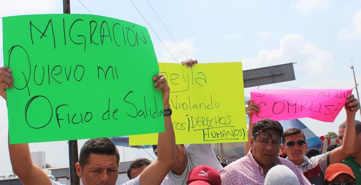 Este grupo de personas, con los representantes jurídicos, pegaron las cartulinas sobre las vallas metálicas que sirven de protección de la estación migratoria, en las que demandaron al gobierno les entrega los oficios de salida Al grito de “Queremos oficios de salida, queremos oficios de salida”, los migrantes advirtieron que seguirán pidiendo sus papeles para salir de esta ciudad fronteriza con Guatemala y en la que han pasado meses varados.