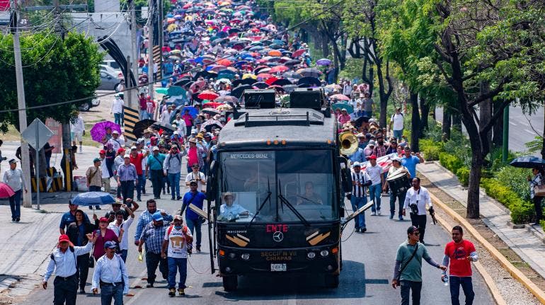 Miles de profesores caminan en Chiapas para exigir sus derechos