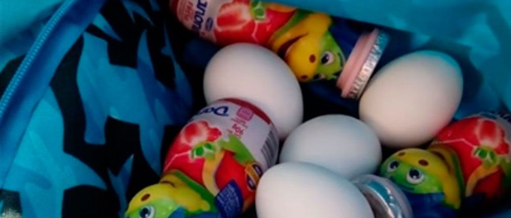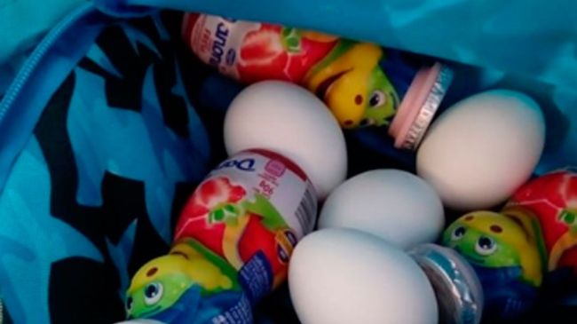 Tras esto, decidió averiguar la razón del peso extra en la mochila por lo que la abrió y al hacerlo descubrió que dentro traía algunos huevos y yogurts para beber.