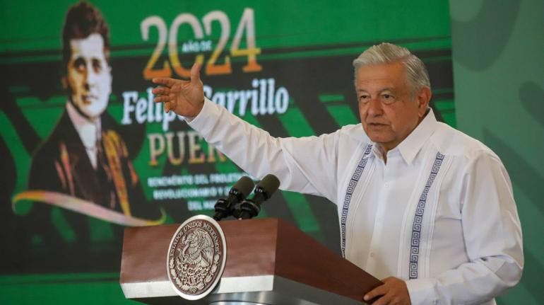 Y es que el tabasqueño acudió a la entidad del sureste del país por el centenario del asesinato del político, periodista y caudillo revolucionario, Felipe Carrillo Puerto, por lo que una vez que llegó al Palacio Municipal de Motul, las autoridades desplegaron una manta con la figura del mandatario, en cuyo texto le dieron la bienvenida y refirieron el nombramiento de "héroe nacional".