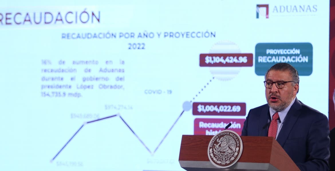 Minutos antes de dar a conocer su dimisión al cargo, Duarte Olivares dijo que en lo que va de 2022, en las aduanas se han recaudado 820 mil millones de pesos, que significa un incremento de 11 por ciento con respecto a 2021.