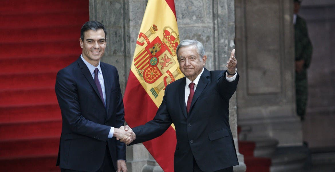 Pedro Sánchez llega Palacio Nacional para reunirse con López Obrador