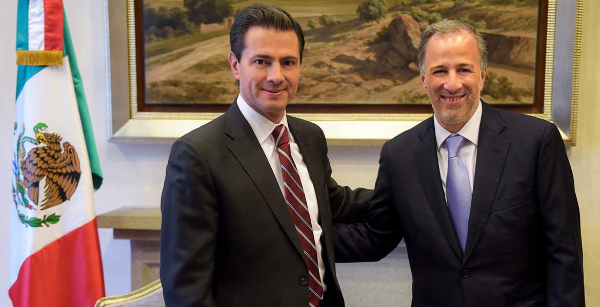 Ciudad de México.- En la residencia oficial de Los Pinos, el presidente Enrique Peña Nieto recibió la tarde de este jueves a quien fuera el candidato presidencial de la coalición Todos por México, José Antonio Meade Kuribreña.