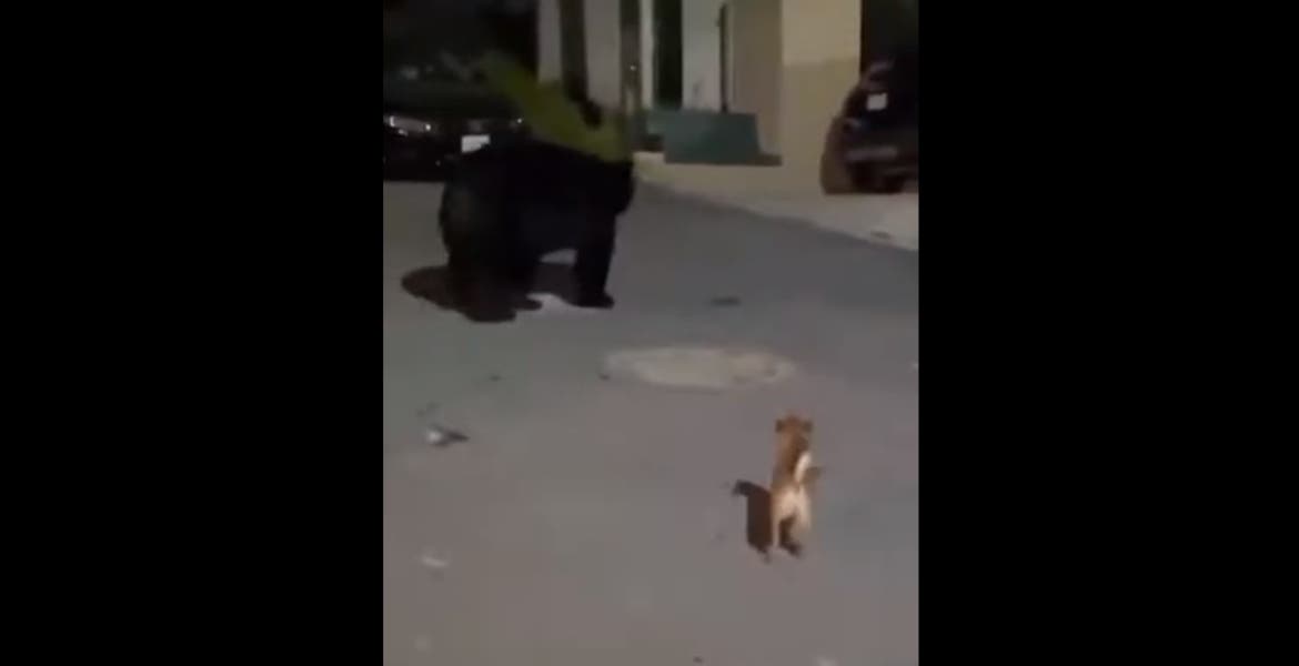 Perrito chihuahua trata de ahuyentar a un oso en Monterrey