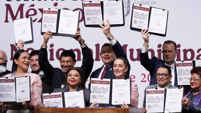 En el acto, los funcionarios firmaron un convenio para formalizar el componente indígena del FAIS, con la presencia de gobernadores de oposición, como Samuel García, del norteño Nuevo León, o Mauricio Kuri, del central Querétaro, quienes expresaron su respaldo total a las políticas del gobierno federal.