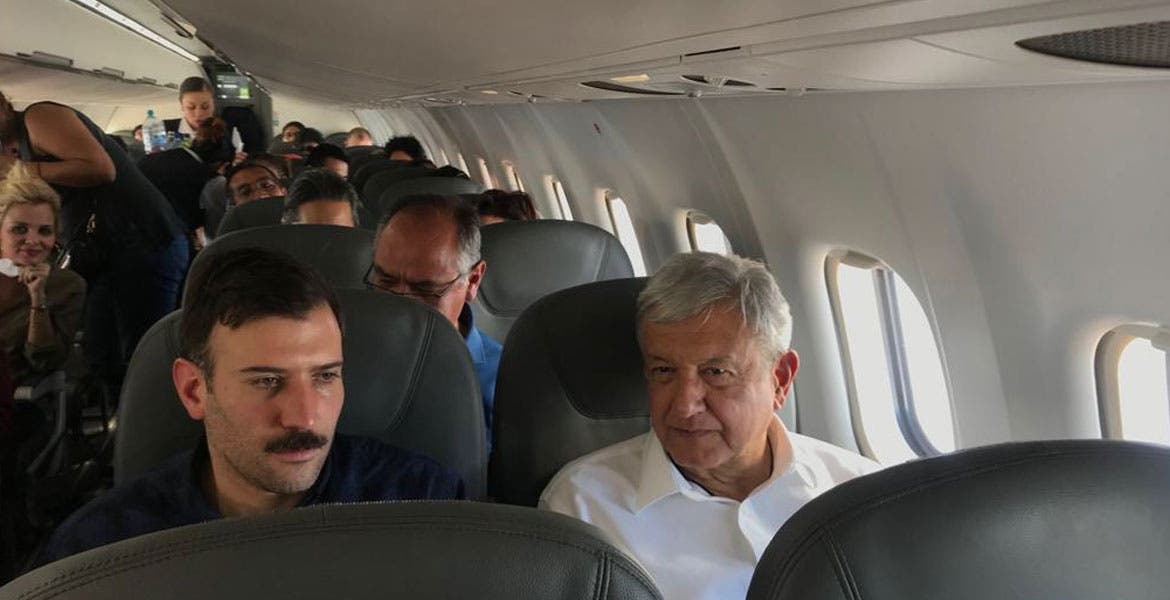 “Una bienvenida especial al Presidente que nos acompaña el día de hoy, esperamos que se sienta a gusto, ojalá lo podamos convencer de hacer el aeropuerto de Texcoco”, dijo el piloto mediante el altavoz.