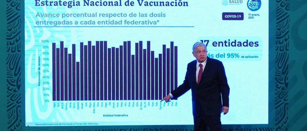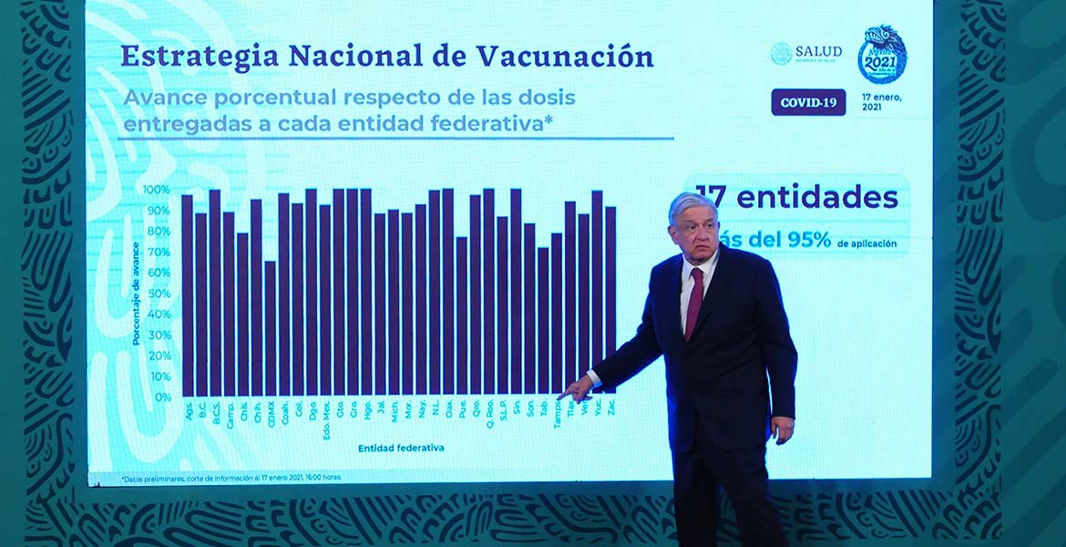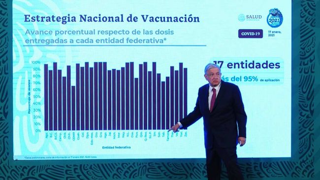 El jefe del Ejecutivo federal garantizó que el plan de vacunación en territorio nacional sigue en marcha y que las dosis que falten de Pfizer serán complementadas con las de las vacunas Sputnik V, de Rusia; CanSino, de China y con la de AstraZeneca, desarrollada en la Universidad de Oxford, Reino Unido.