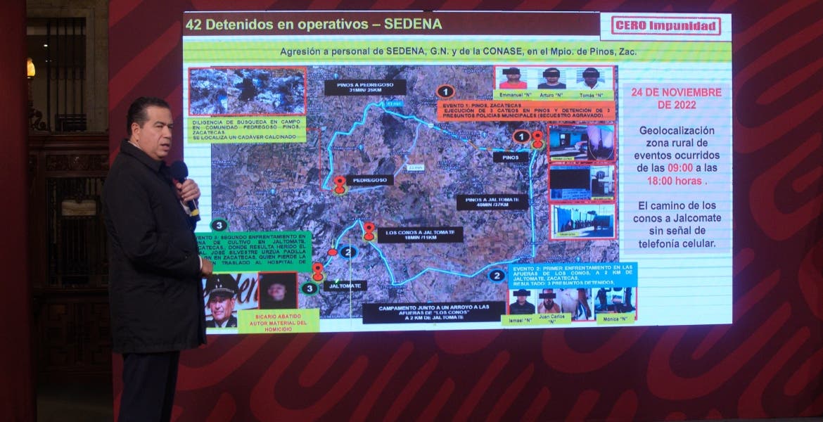 Ciudad de México.- De noviembre del año pasado al de este año se ha logrado la captura de 131 generadores de violencia en Zacatecas, aseguró Ricardo Mejía Berdeja, subsecretario de Seguridad y Protección Ciudadana (SSPC).