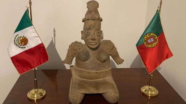 Esta tarde, se informó que la representación diplomática de México en Lisboa, Portugal, logró recuperar una pieza arqueológica de origen mexicano, misma que sería ofertada por la casa de subastas Renascimento-Avaliações e Leilões, con sede en la capital del país luso.