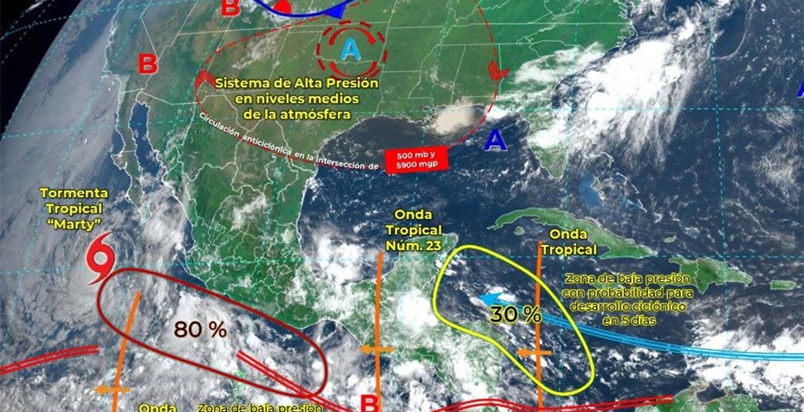 #AvisoMeteorológico La #TormentaTropical #Marty mantiene su trayectoria hacia el oeste https://t.co/8IVKpvDv18 pic.twitter.com/P6wn78szwO