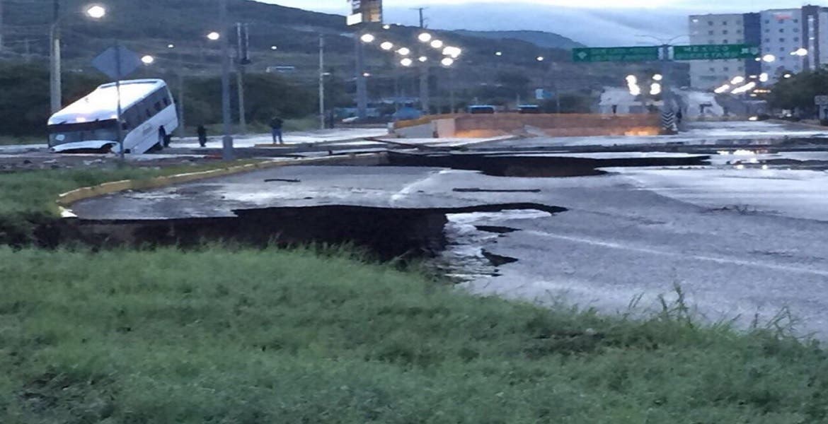Inundaciones en Querétaro provocan socavón en inmediaciones de Antea; un autobús cayó.Mira el video de @luciomaximus pic.twitter.com/hUCHeP8uQg