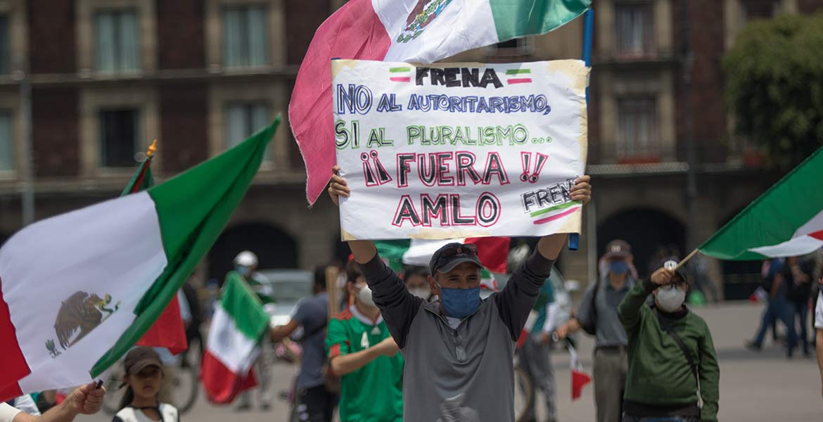 El movimiento conservador Frente Nacional Anti-Andrés Manuel López Obrador (Frenaa) convocó el sábado y el domingo manifestaciones en automóvil por el centro de la capital mexicana para exigir la renuncia del presidente y posteriormente varios miembros organizaron un plantón con tiendas de campaña en la calle.