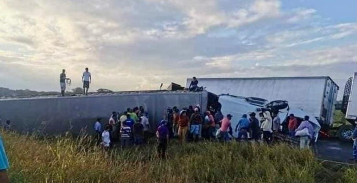 El accidente ocurrió en el kilómetro 70, debido a que el conductor de la unidad perdió el control, lo cual hizo que se impactara y terminara volcándose sobre su lado derecho, tras eso, la gente empezó a robarse los becerros de un semirremolque tipo jaula.
