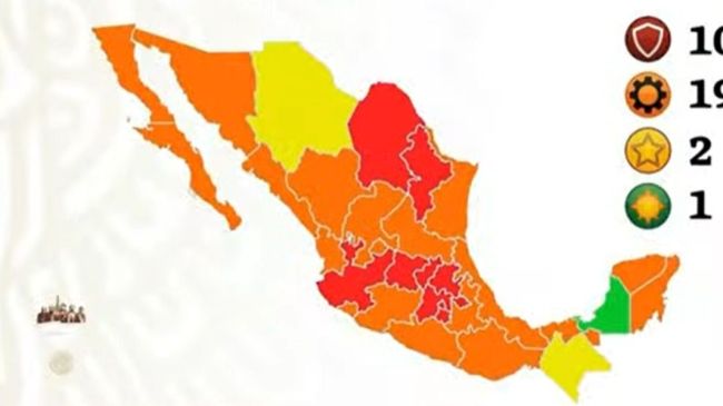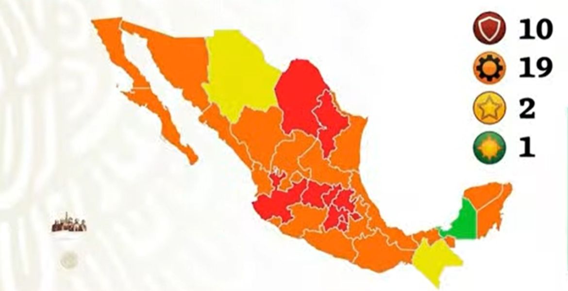 En tanto, Campeche seguirá siendo la única entidad en color verde o en bajo riesgo.