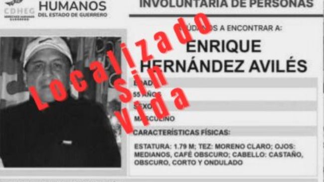 Guerrero. – La organización Periodistas Desplazados México dio a conocer que el periodista Enrique Hernández Avilés fue hallado sin vida en una fosa clandestina, los responsables de su muerte serían policías y el ex escolta del alcalde de Taxco, Mario Figueroa, según refiere la organización.