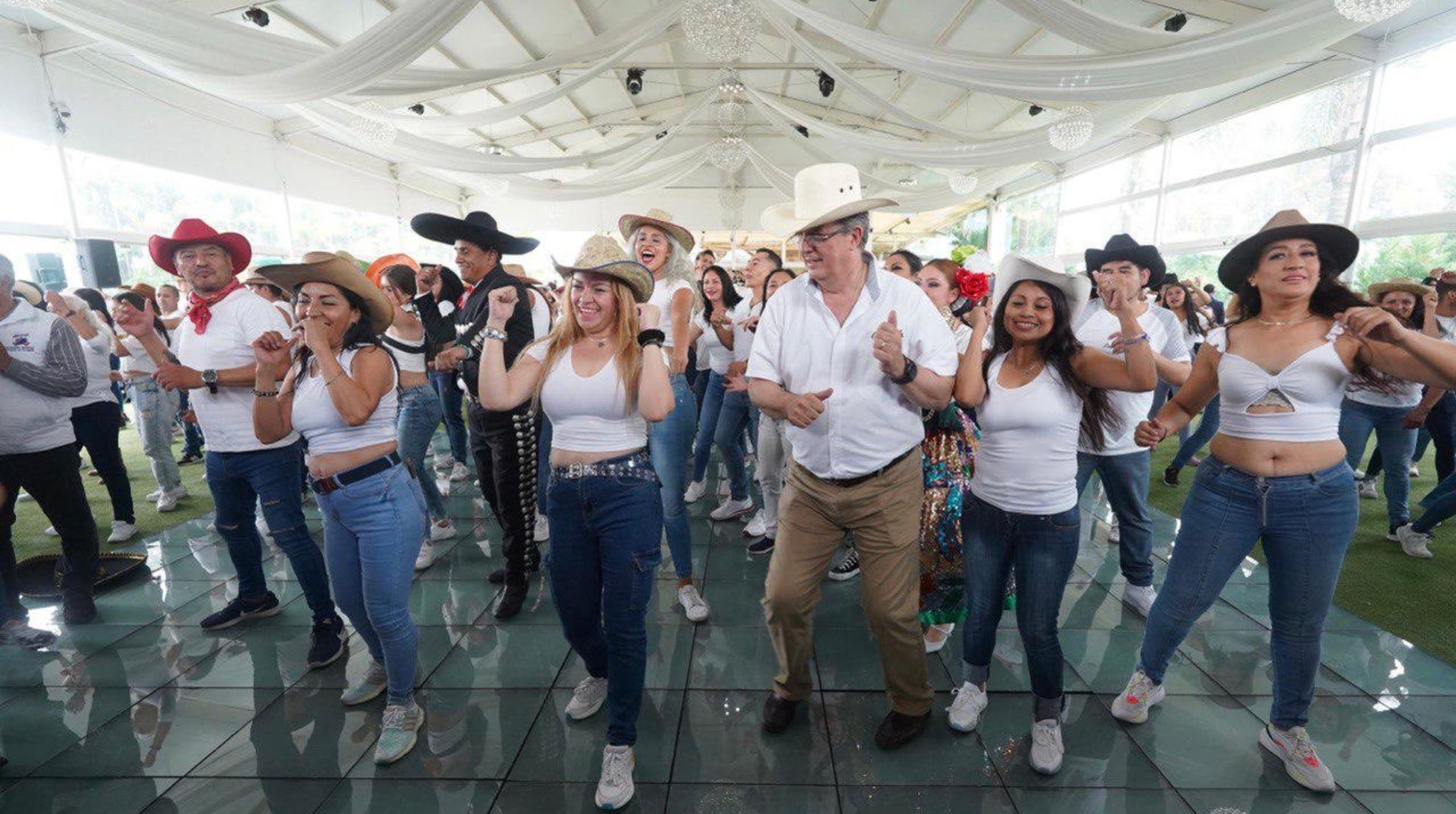 Por otro lado, Ebrard Casaubon se echó un bailongo del grupo Caballo Dorado con varias mujeres y hombres que portaron sombreros vaqueros.