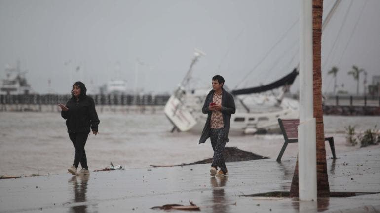 El fenómeno presenta vientos máximos sostenidos de 100 kilómetros por hora, rachas de 120 kilómetros por hora y un desplazamiento hacia el nor-noroeste de 13 kilómetros por hora, de acuerdo con el organismo de la Comisión Nacional del Agua (Conagua).