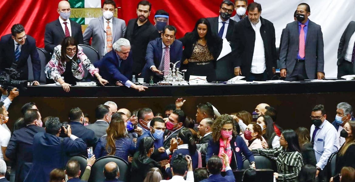 Lo anterior originó esta madrugada que legisladores de Morena y Acción Nacional protagonizaran un altercado con empujones, jaloneos y gritos luego de que los primeros subieron a tribuna en el turno de la diputada Mariana Gómez del Campo (PAN) y comenzaron a rodearla.