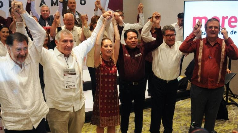 Los otros cuatro contendientes son Claudia Sheinbaum pardo, exjefa de Gobierno, Ricardo Monreal Ávila, senador con licencia de Morena, Gerardo Fernández Noroña, diputado del PT y Manuel Velasco Coello, senador con licencia del PVEM.