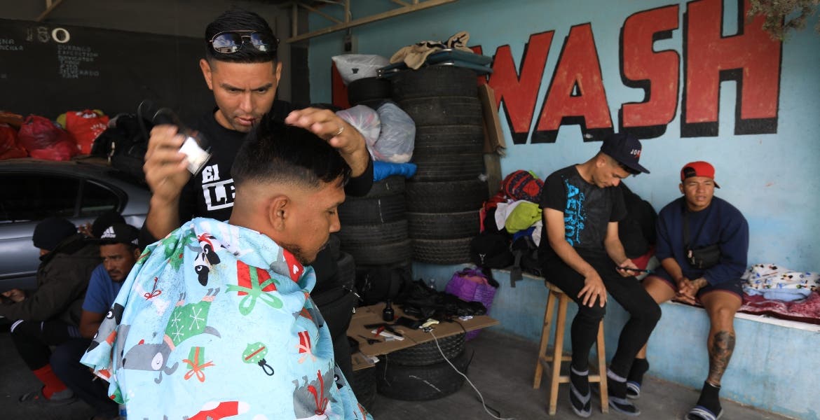 Venezolanos varados en Ciudad Juárez subsisten como barberos