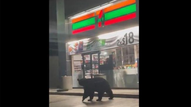 Las imágenes capturadas muestran al oso caminando con tranquilidad justo frente a la puerta del 7-Eleven, como si estuviera considerando la posibilidad de entrar y satisfacer algún antojo. Luego, sin mayor alboroto, el oso se aleja de la entrada, dejando a los espectadores con una mezcla de sorpresa y diversión.