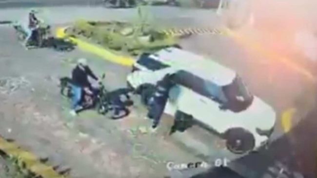 Cámaras de seguridad captaron el momento en que los agresores intentaron huir a pie tras el intercambio de disparos.