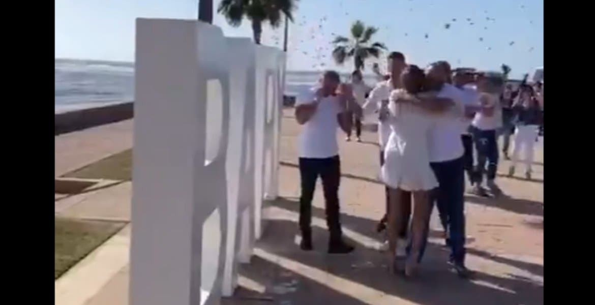 En los videos se observa un helicóptero volar a la orilla de la playa desprendiendo humo para revelar el género del bebé, además de un grupo de personas, entre los que hay menores de edad, muchos de ellos sin cubrebocas y sin guardar la sana distancia.