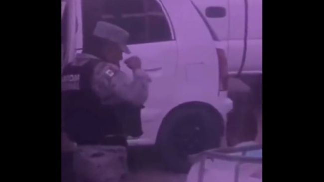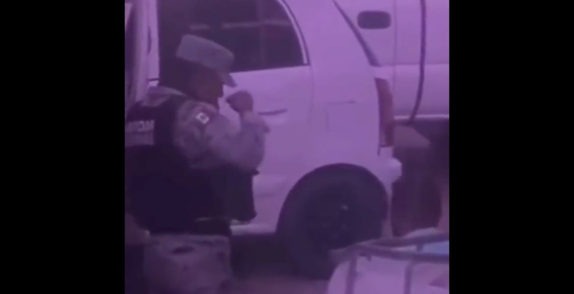 Ciudad de México.- Ha sido exhibido un elemento de la Guardia Nacional porque se presume que estaba inhalando alguna sustancia, que al parecer sería cocaína.