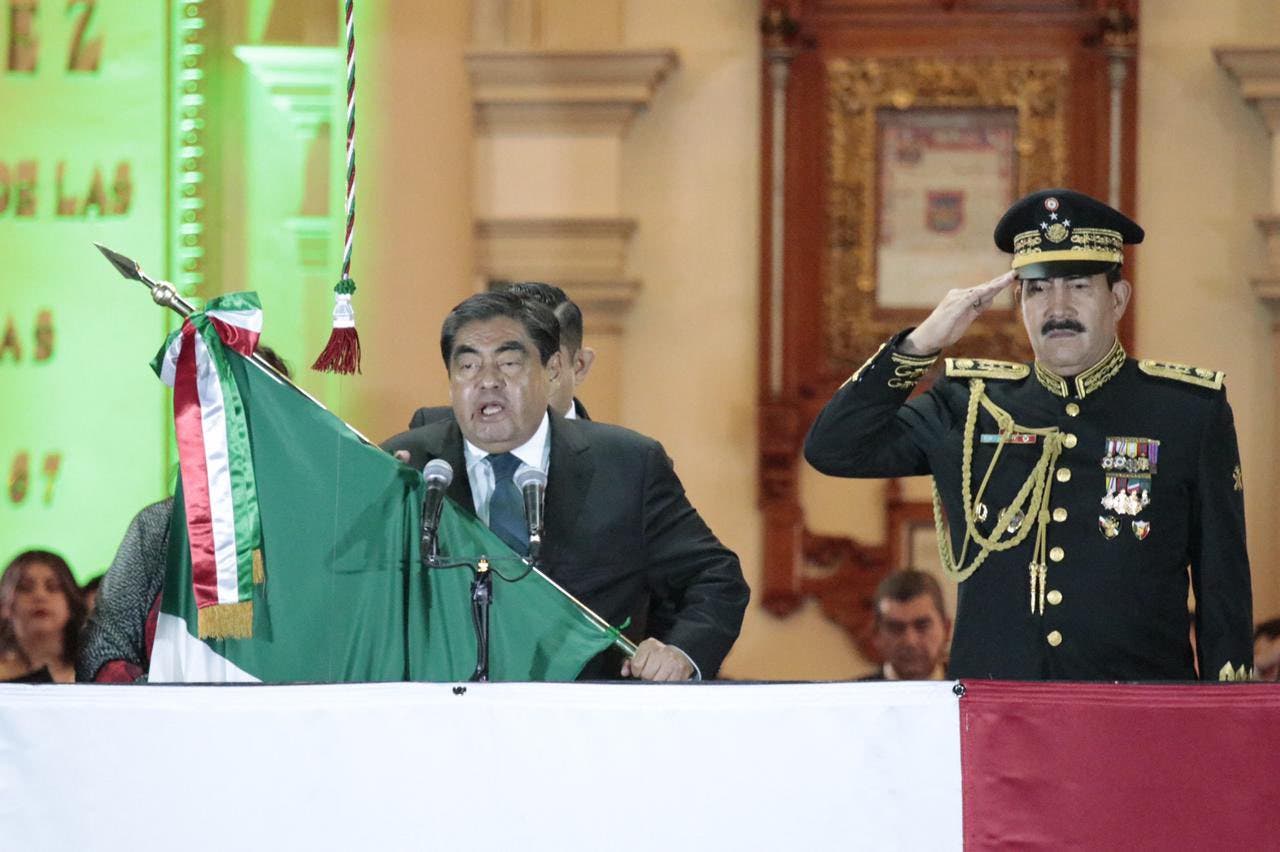 Casi en punto de las 11:00 pm y después del grito del presidente de la República, Andrés Manuel López Obrador, el gobernador Luis Miguel Barbosa Huerta siguió con la arenga: