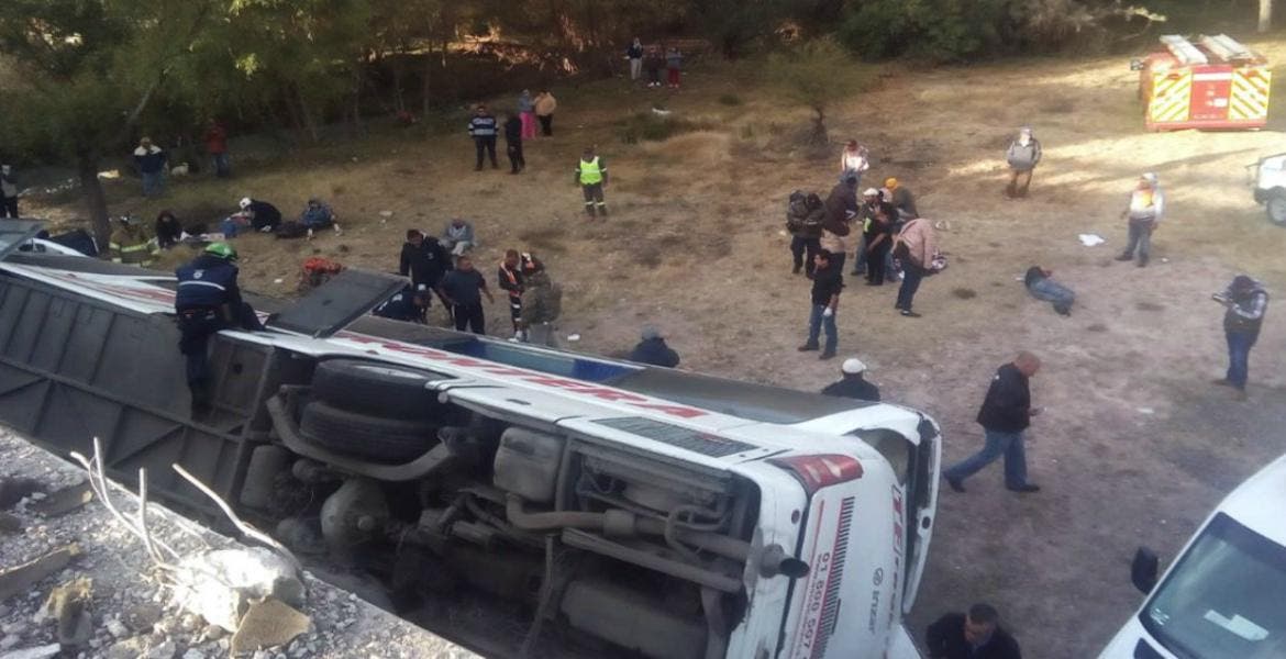 Volcadura de autobús en San Luis Potosí deja siete muertos