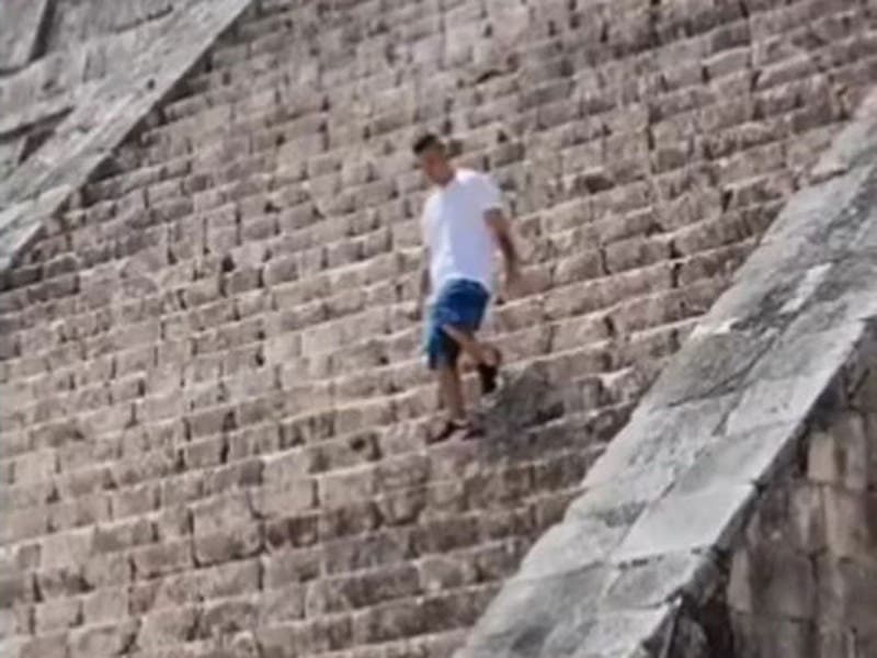 El hecho ocurrió el pasado fin de semana y fue captado en video por otro turista, quien compartió las imágenes en redes sociales. En el video se puede ver cómo el hombre de playera blanca sube los escalones de la pirámide hasta llegar al Castillo, donde permanece unos minutos.